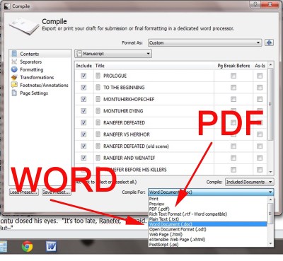 You then can choose from a drop-down box the way you wish to save the manuscript. I save mine as .doc, which, being such, MSWord can work with.