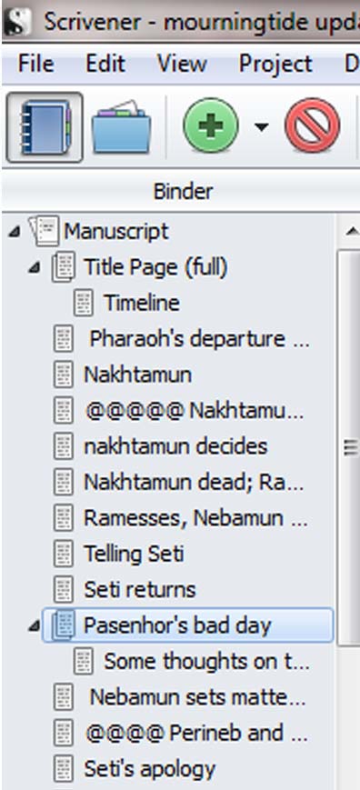 That column (on the left) has all the chapters of the novel in the order in which I have put them. Here it is, in part (I have a lot of chapters):