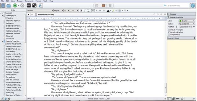 So, what is ‘Scrivener’, exactly? It is, in my opinion, the most useful creative writing system to come along since word processing began. It enables a novelist, like me, to write a book in my usual willy-nilly fashion with an outline. Chapters are conceived of and composed, not always in sequence, and they are inserted in the point of the manuscript where they most likely appear.