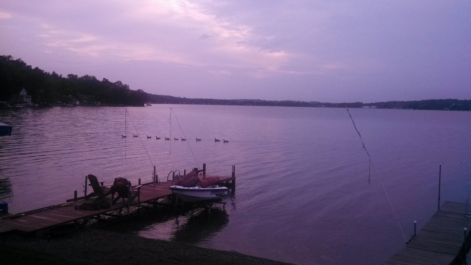 I brought my phone with me, of course, and sitting in the living room and looking out over the lake as a flotilla of Canada geese moved across the water in the early morning light, I realized that I had watched that sight thousands of times over the years.