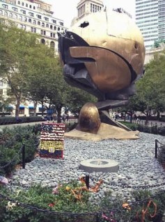 It was the globe that sat in the plaza at the World Trade Center. I had passed it many times. Battered, broken… How strange to see it.