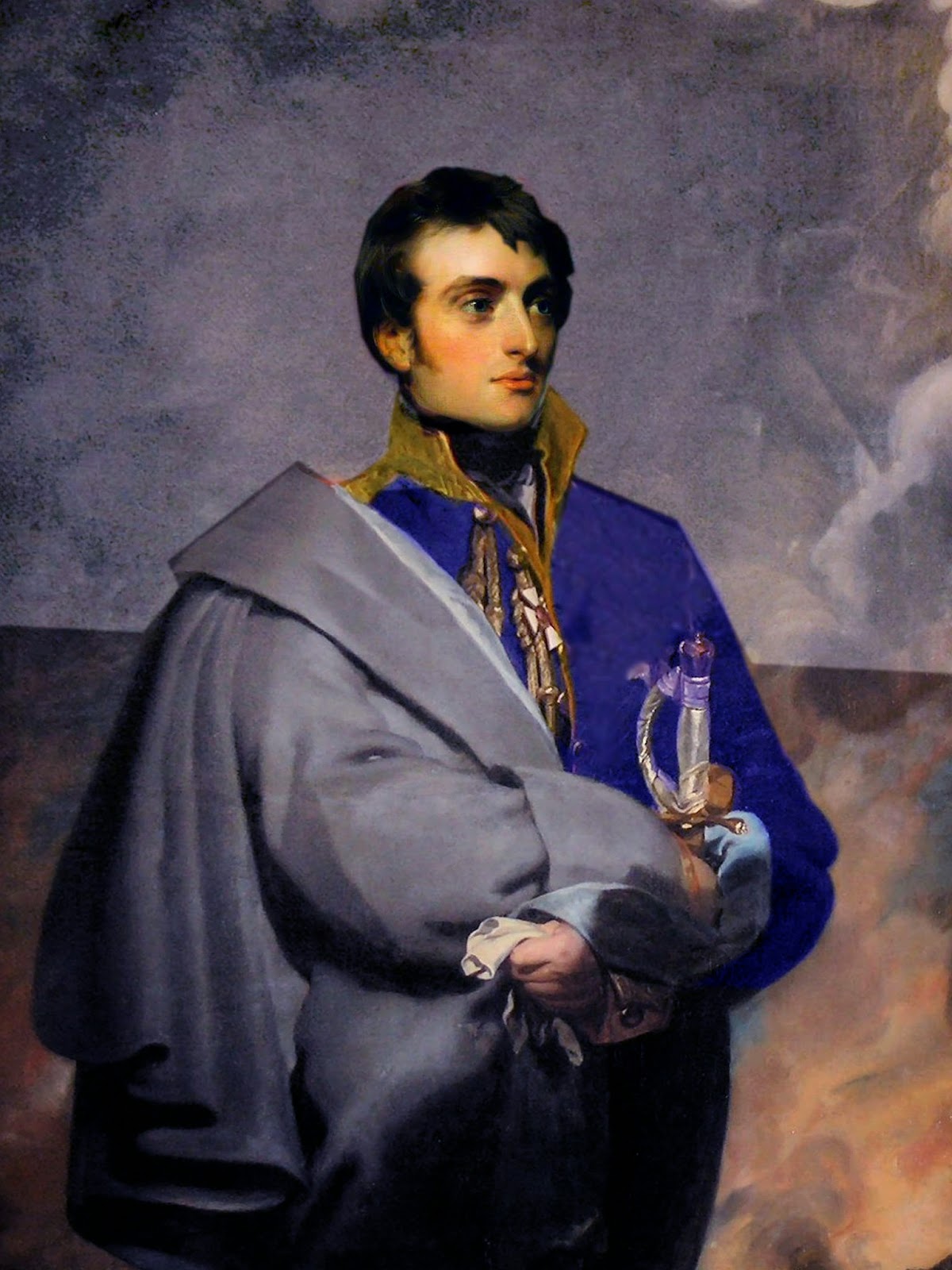When you are working in period, as opposed to simply trying to set a time-like feel to the story, you have to be careful about facial types.  The western Europeans of two hundred years ago do not look the same as they do now.  There has been a blending of peoples.  One forensic anthropologist, often called upon to identify bodies found on a certain battlefield, said that he could usually tell by looking at the skull.  In my case, I needed images to work with, either to be purchased, or in the public domain.  I started looking among portraits of the era.  Sir Thomas Lawrence was a portraitist active at that time.  I strolled through his paintings.  I wanted someone who was under 50 years old, moderately refined.  I only needed a head.