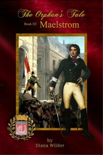 I adjusted the image: the epaulettes were out of place, the hair out of fashion.  During the action of the third book, the hero is trying to make his way out of a riot.  He would not be in uniform and the uniform would not, at any rate, look like that.  He would, at least at first, be carrying that heavy cavalry sword (it’s a sword, for thrusting, and is straight: sabers, used by light cavalry for slashing, are curved) I tried the earlier cover:
