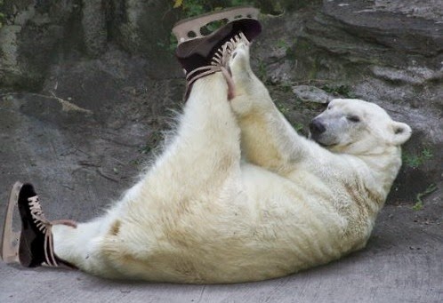 Funny! I never realized polar bears do ice skating. The pic of the bear putting on his skates put a big smile on my face. Love it, Diana!